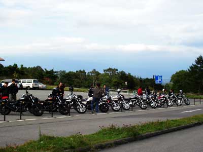 無事にバイクのところに戻ることが出来てみなさん一安心(たぶん一番ほっとしたのは、かみちんさん) 歩きすぎてへとへと。ライダーは歩いちゃだめです。 この後の予定は白根浅間山ルートだったのだけど、時間がないので予定変更して下ることにしました。 ■火山博物館と二輪車展示館
