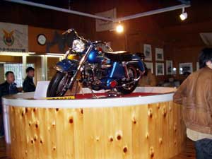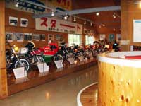 ひろびろ駐車場に並ぶエリ達 だいぶ走って 火山博物館に到着です。バイクをおいて博物館見学。なかなか楽しかったね(そうでもないって?)。二輪車展示館ではみなさん「陸王」にくぎ付け(いくらは知らない。。)古いバイクがいろいろ展示してありました。古いバイク雑誌も興味津々だったね。